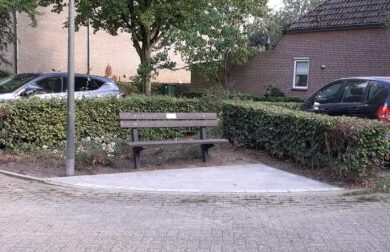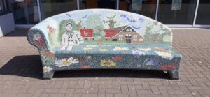 Op veel plaatsen zie je deze mozaïeksofa’s verschijnen. Elsendorp kon niet achterblijven. Initiatiefnemer Wilma van der Wijst nam contact op met Karin Bruers die social sofa in het leven riep. Met een op maat gemaakt ontwerp ging een aantal vrouwen aan de slag met tegeltjes, kniptang en lijm met deze sofa als resultaat.