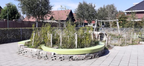 in het logo van de school. De spiraal weerspiegelt beweging, groei, ontwikkeling, speelsheid en interactie. Er was speciaal vervoer nodig voor de rit van de Rotterdamse kunstenaar naar Elsendorp. Met de aanleg van een nieuw schoolplein in 2024 is de spiraal opgenomen in de beplanting.
