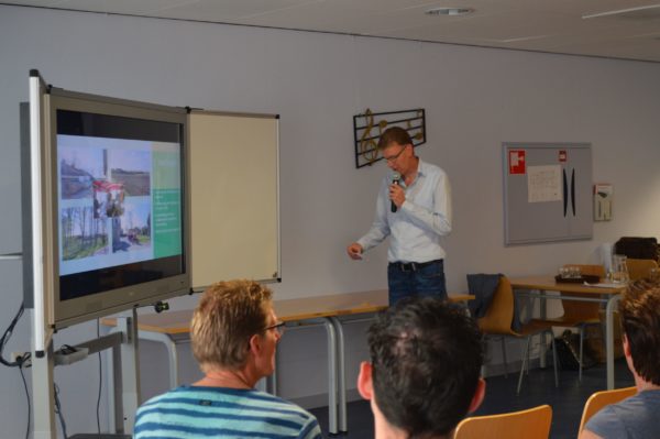 De spreker in het buurthuis, links pastoor Naessens, rechts Willy Donkers, voorzitter Dorpsoverleg
